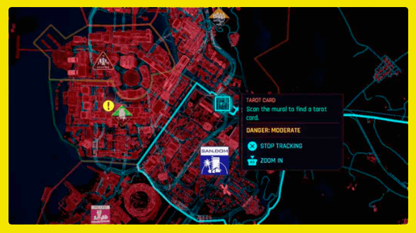 Карты Таро – это тип коллекционных предметов в Cyberpunk 2077. Карты Таро автоматически отмечаются на вашей карте по ходу истории. Все они будут отмечены на вашем радаре. Идите к ним и отсканируйте граффити (используйте сканер). После сканирования Граффити Таро вы будете вознаграждены картой Таро.