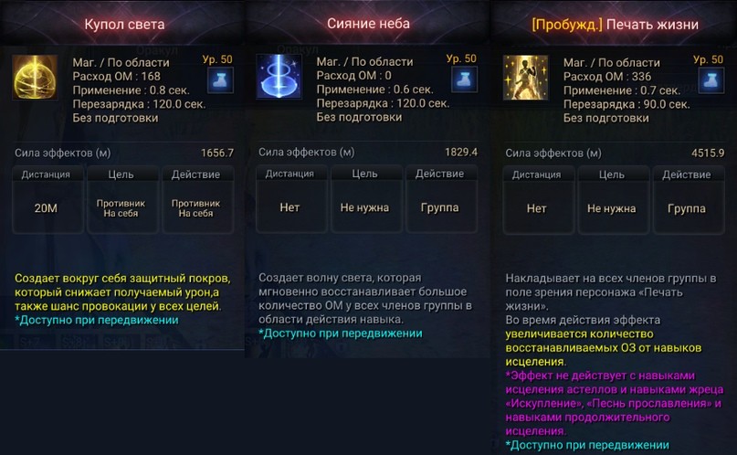 Благодаря комбо-навыкам астеллов жрец может существенно повысить свои способности контроля и исцеления. Комбо-навык Кумихо «Молитва» после умения «Защитный покров» даст продолжительное восстановление здоровья всем членам группы, а умение Виски «Водяной пузырь» после навыка «Оковы страха» удержит врага внутри пузыря, обездвиживая его и ограничивая использование навыков.