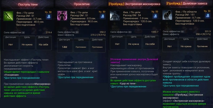 - ОМ: Количество очков параметров, расходуемых при использовании навыков. При нехватке ОМ невозможно использовать навыки.