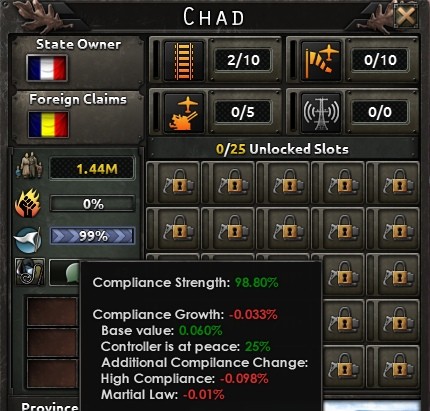 - Первый выражается пассивным штрафом на регион, который увеличит небоевые потери, сократит скорость передвижения и замедлит восполнение организации войск оккупирующей нации.