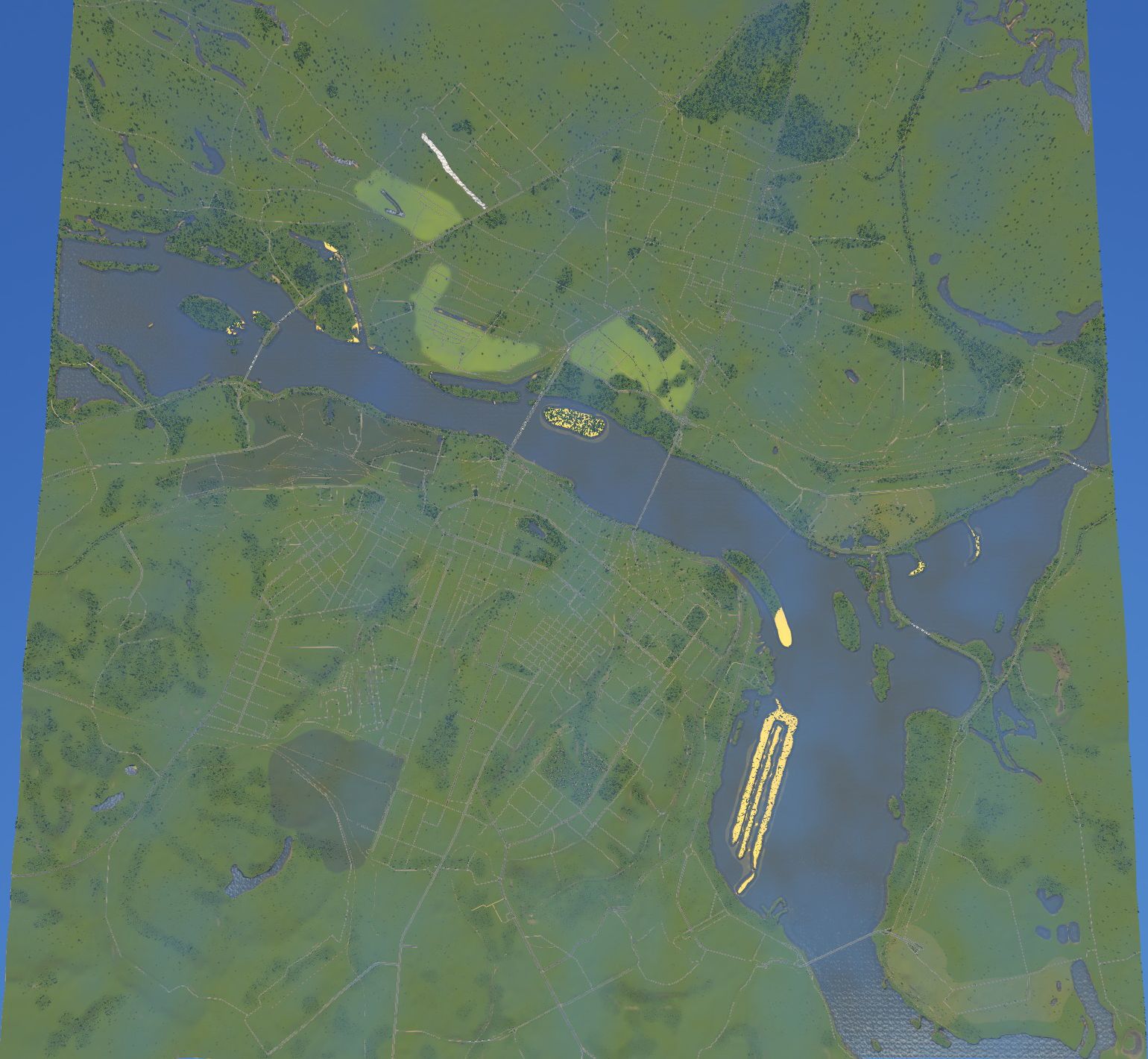 - там где в реальности находятся заводы и промзоны сделаны месторождения полезных ископаемых, на месте частного сектора – плодородная земля;