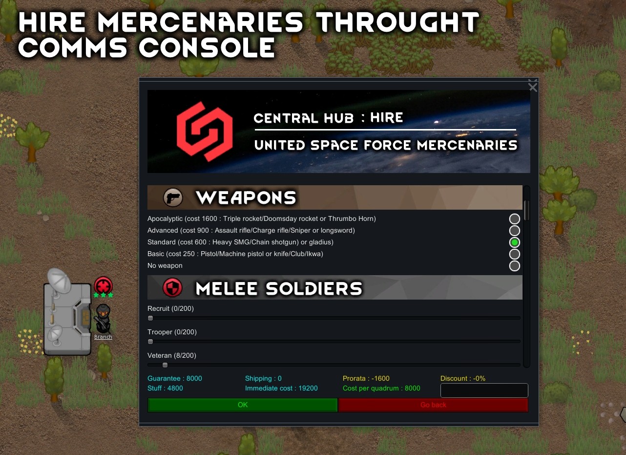 Данный мод дает возможность через консоль связи нанимать наемников через консоль связи и использовать их в качестве телохранителей. Наемники находятся под вашим контролем (как и другие колонисты) на протяжении всего контракта. Контракты наемников не ограничиваются солдатами, вы также можете нанять рабочих (художников, фермеров, ученых, дипломатов, строителей …).