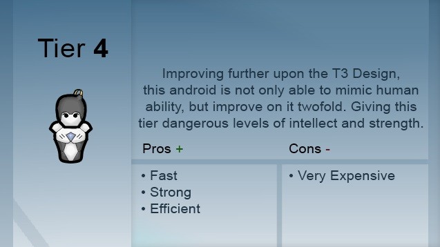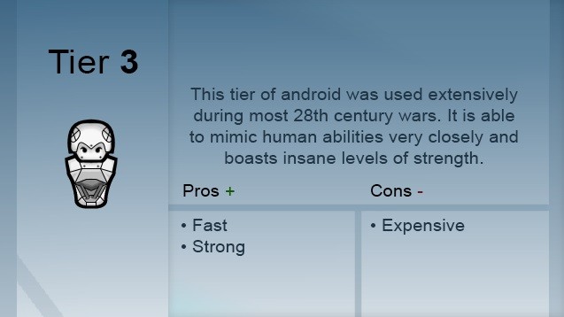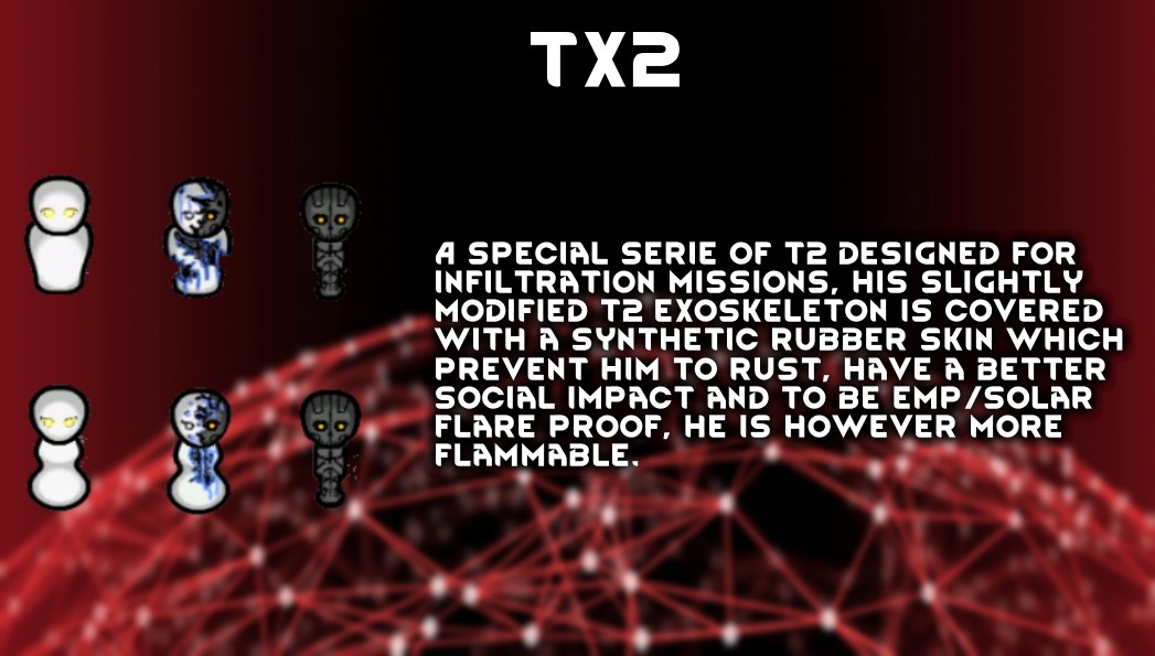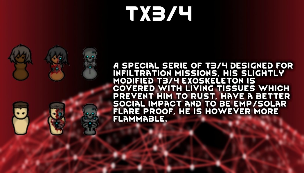 Новая серия андроидов, предназначенная для миссий по проникновению, их слегка модифицированный экзоскелет покрыт кожей и живыми тканями, которые предотвращают коррозию, оказывают лучшее социальное воздействие и защищают от ЭМИ и солнечных вспышек. Однако они более огнеопасны.