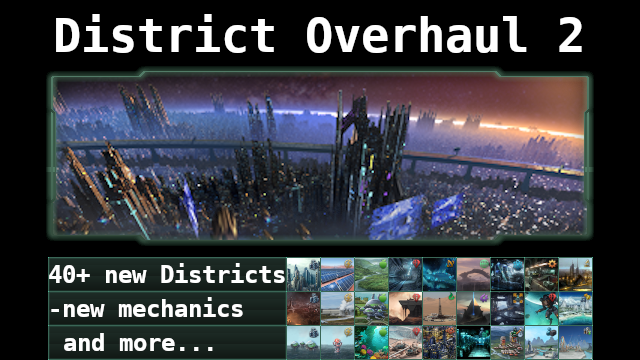Мод District Overhaul 2 на русском языке. Вы когда-нибудь чувствовали, что механики района в Stellaris не имеют 100% смысла? Этот мод направлен на то, чтобы улучшить данную часть геймплея. District Overhaul 2 будет полуслучайным образом генерировать альтернативные районы на всех ваших планетах. Кроме того, он добавляет новые уникальные механики для улучшения системы районов.