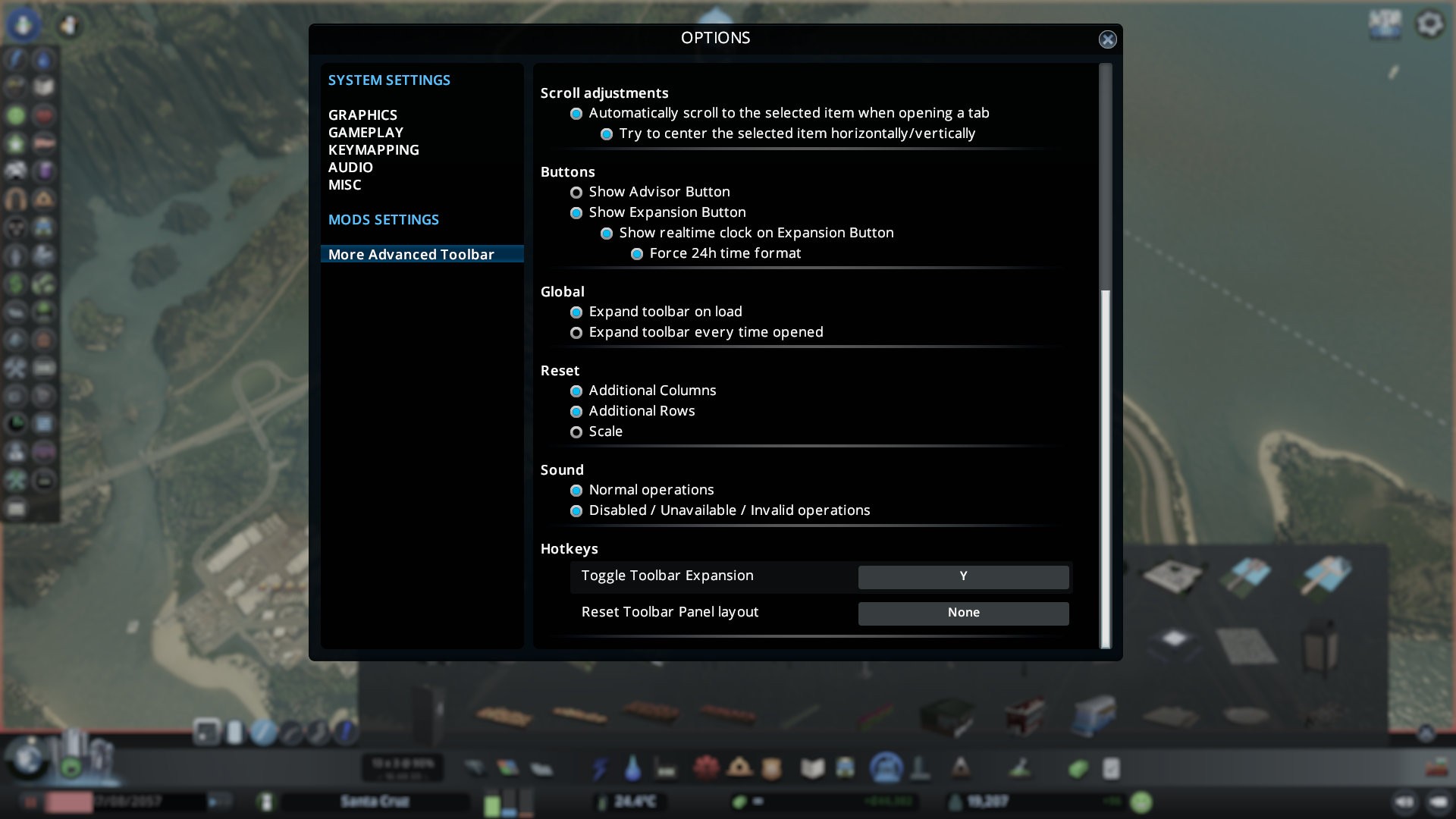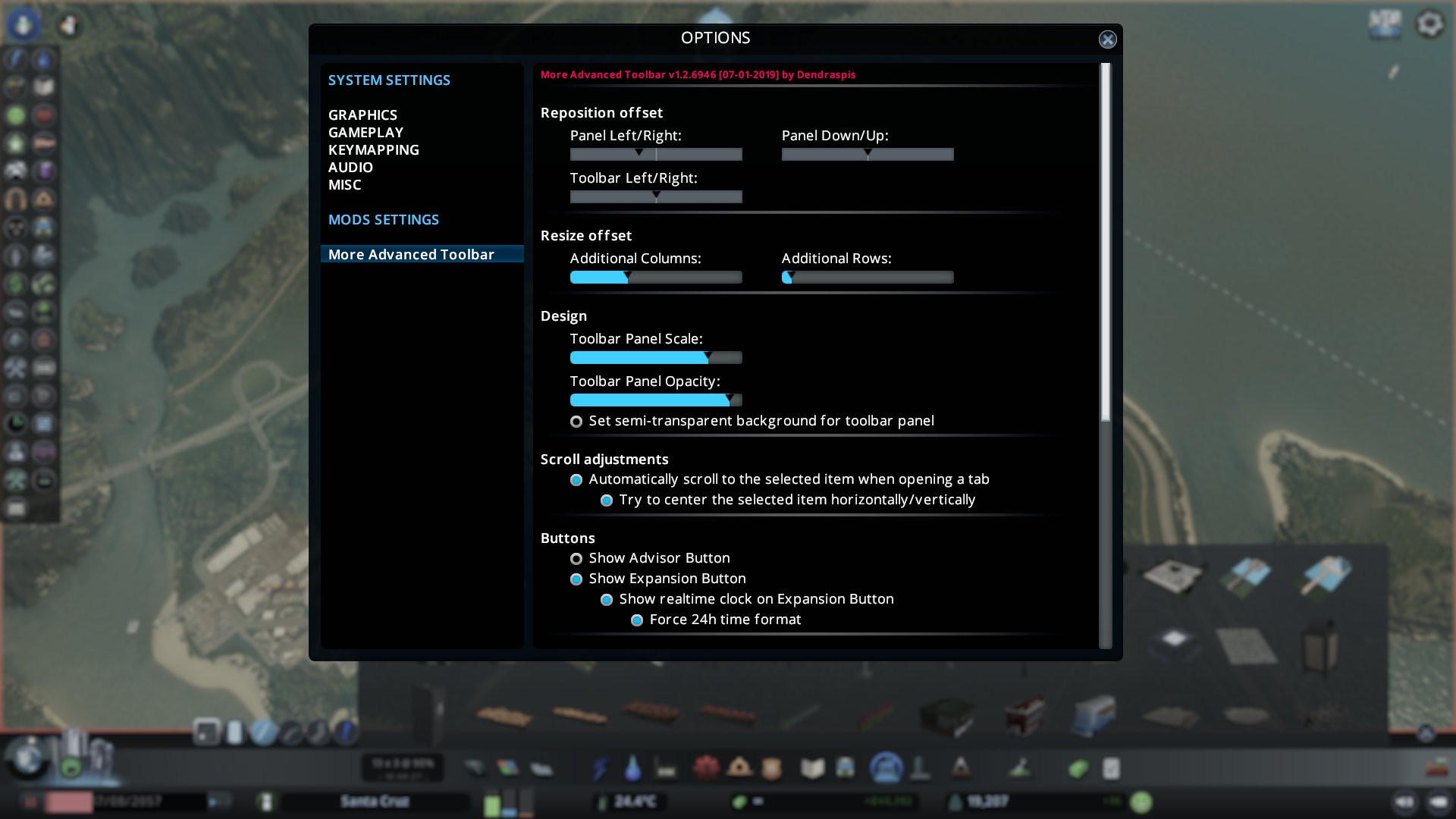 Вы можете использовать этот мод для изменения положения и размера панели инструментов в игре. У вас будет выбор между обычной ванильной или расширенной панелью инструментов, которые можно переключать нажатием горячих клавиш. Кроме того, есть несколько функций для настройки панели под себя.