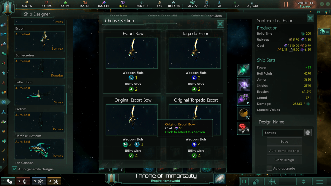 - Оригинальные эскорты, линейные крейсеры, секции Титана угасших империй.