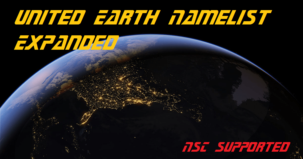 Мод United Earth Namelist Expanded NSC добавляет расширенный список /названий/имен кораблей, планет и лидеров для использования в Объединенных наций Земли или любой другой человеческой культуры.