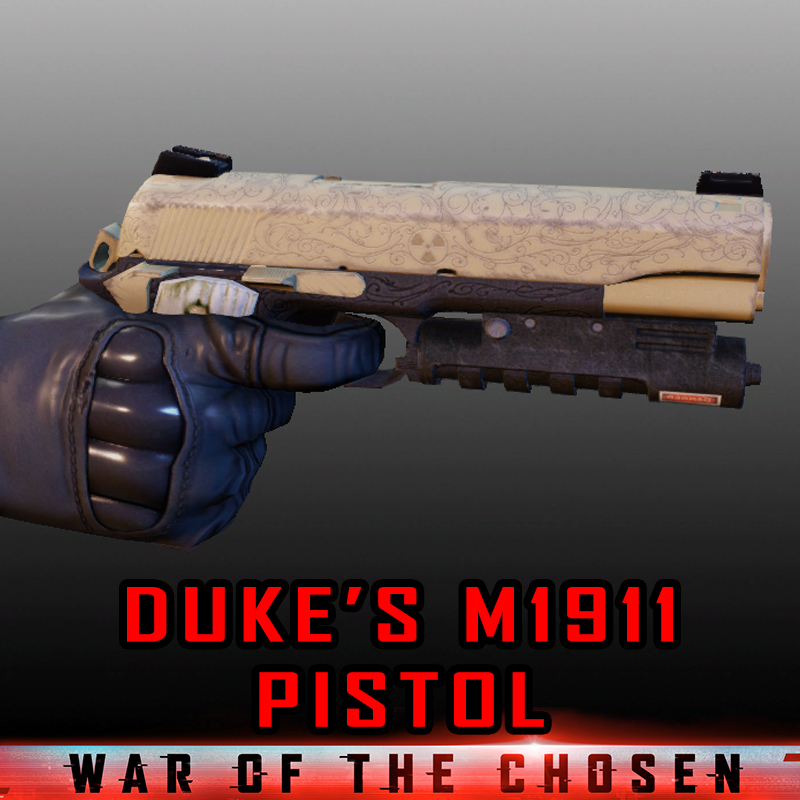 Обычный уровень пистолета Duke M1911 доступен с самого начала, а затем он автоматически обновляется вместе с пистолетами vanilla XCOM.